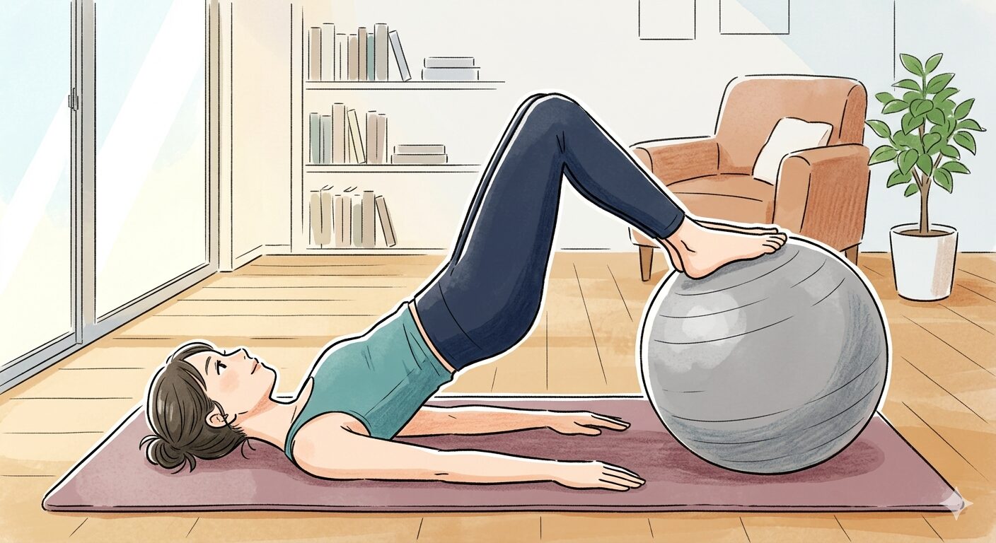 バランスボール×ブリッジは、シンプルに見えてとても奥が深いエクササイズです。呼吸・体幹・骨盤の動きが揃ってくると、じわじわとお尻と体幹に効いているのが実感できるはず。最初は基本から丁寧に、慣れたらバリエーションへ。フォームローラーで前後のケアも忘れずに。「整えながら動く」ピラティスの感覚を、ぜひバランスボールで体感してみてください。