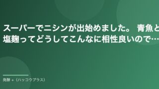 スーパーでニシンが出始めました。 青魚と塩麹ってどうしてこんなに相性良いので…